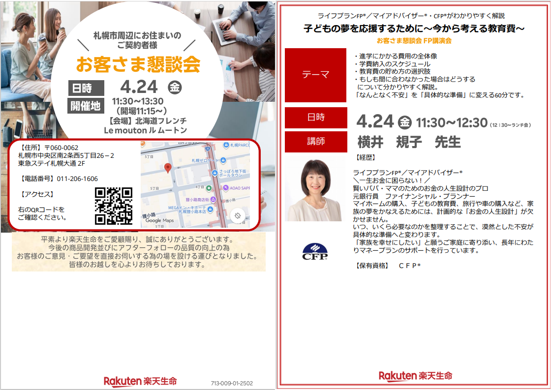 【FP講演会&お客さま懇談会】 楽天生命(不定期開催)